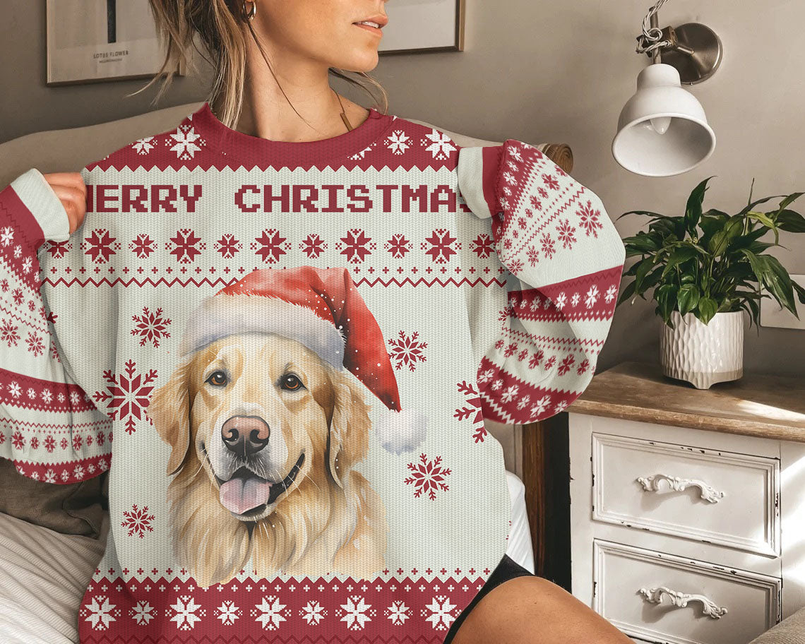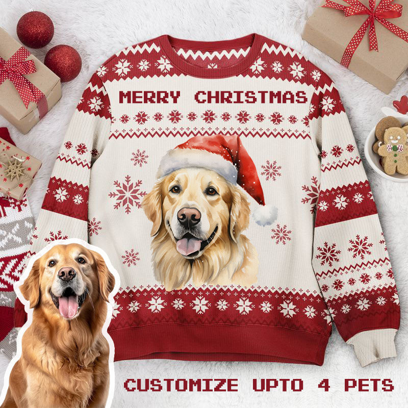 Personalized Pet Dog Cat Merry Christmas Imitation Knitted Sweatshirt