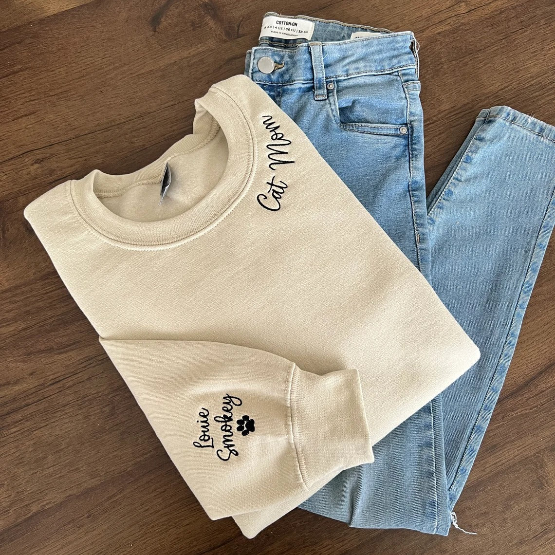 Personalized Pet Dog Cat Mom Embroidered Sweatshirt With Pet Names