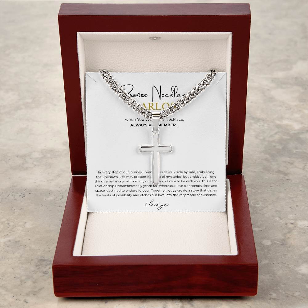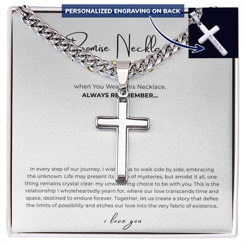 Personalized Promise Necklace Cross with Cuban Link Chain