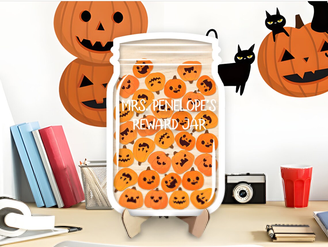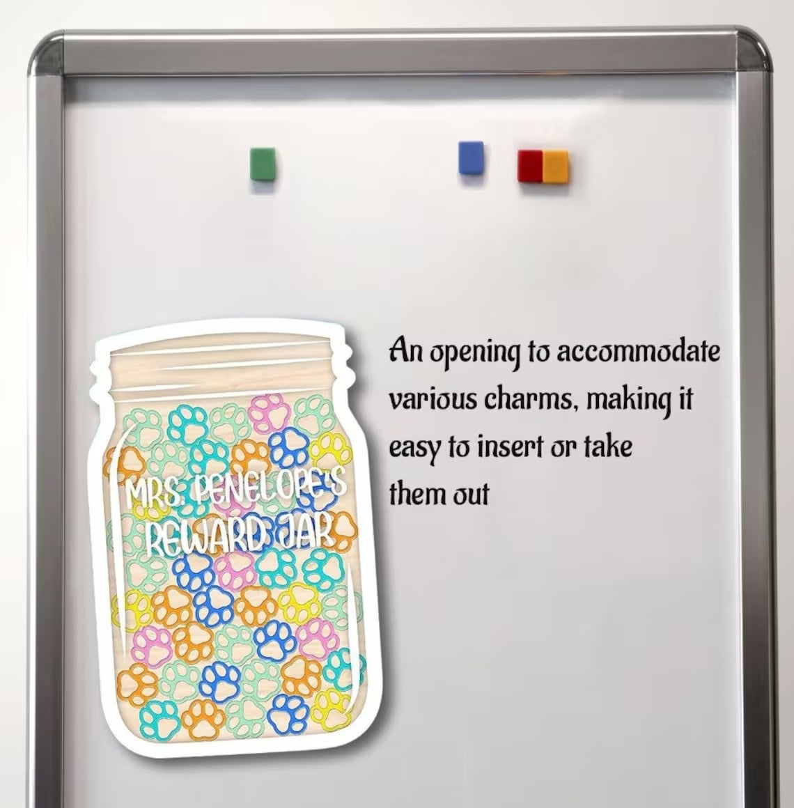 The Personalized Reward Jar comes complete with a stand for easy display.