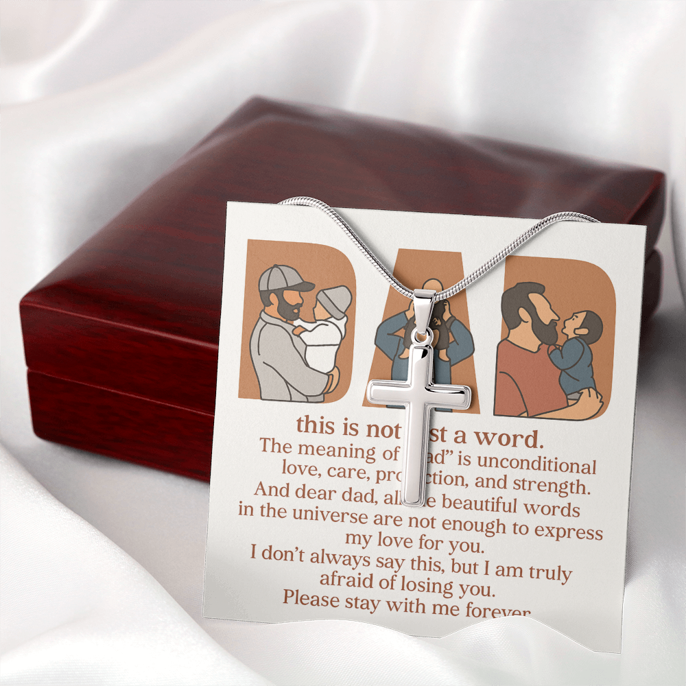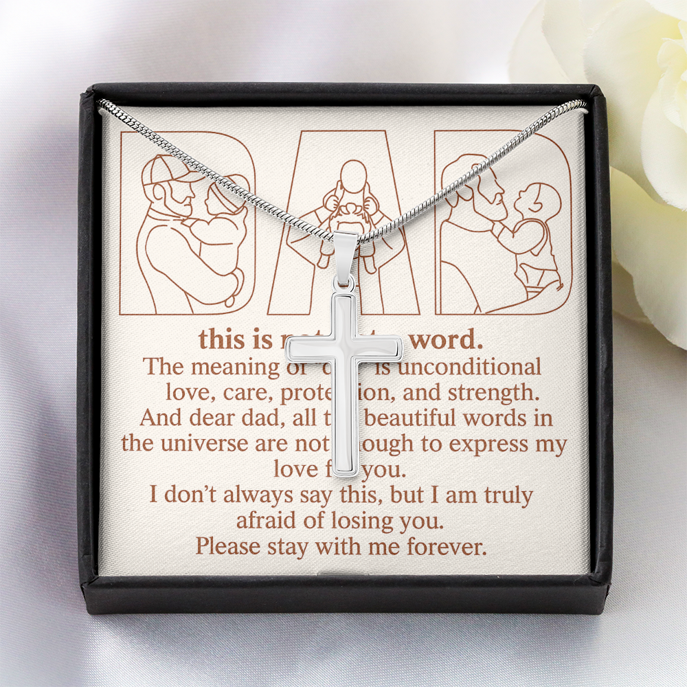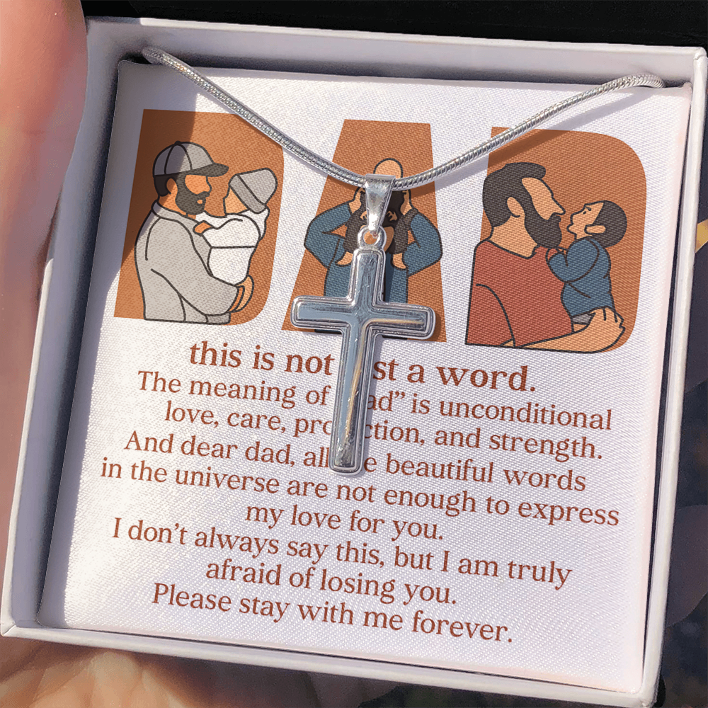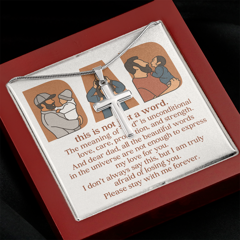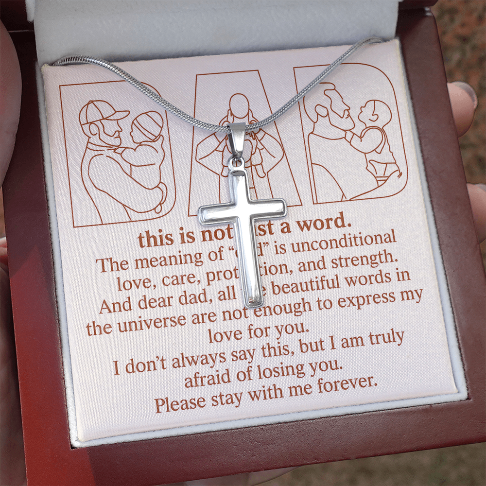 Personalized Stainless Cross Necklace with 3 Family Photos for Dad