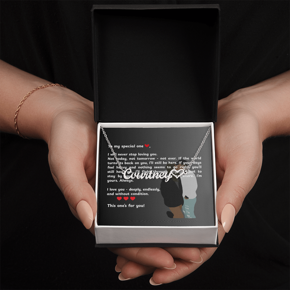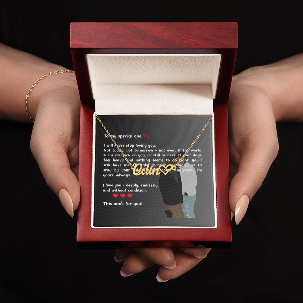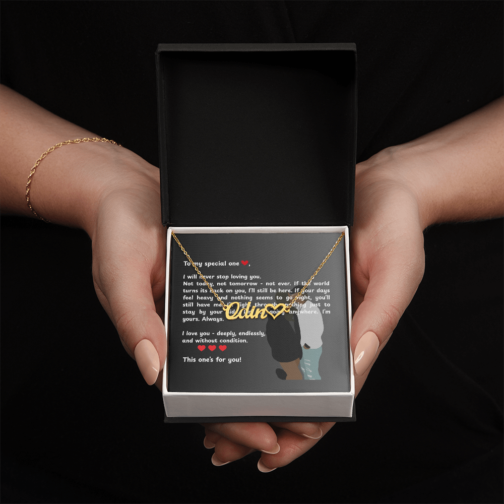 A thoughtful, custom gift is the perfect way to show your appreciation for your loved one! Our Personalized Heart Name Necklace is a chic and stylish accessory that suits any occasion, whether it's a special holiday, anniversary, or simply a spontaneous gesture of affection. With its unique design and personalized touch, this necklace is sure to be a cherished and treasured keepsake for years to come.