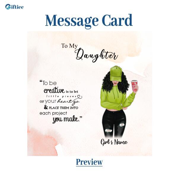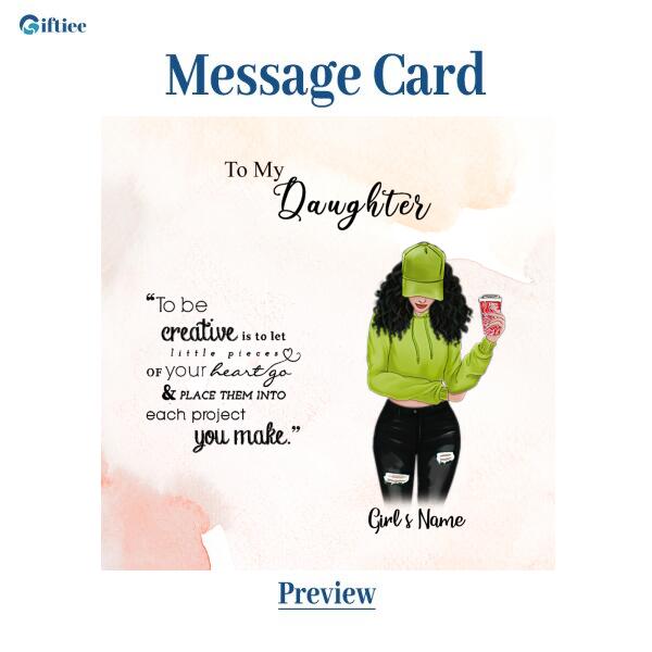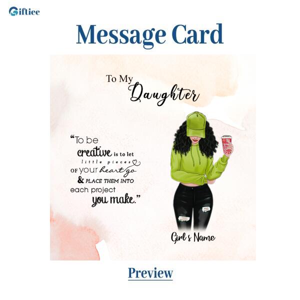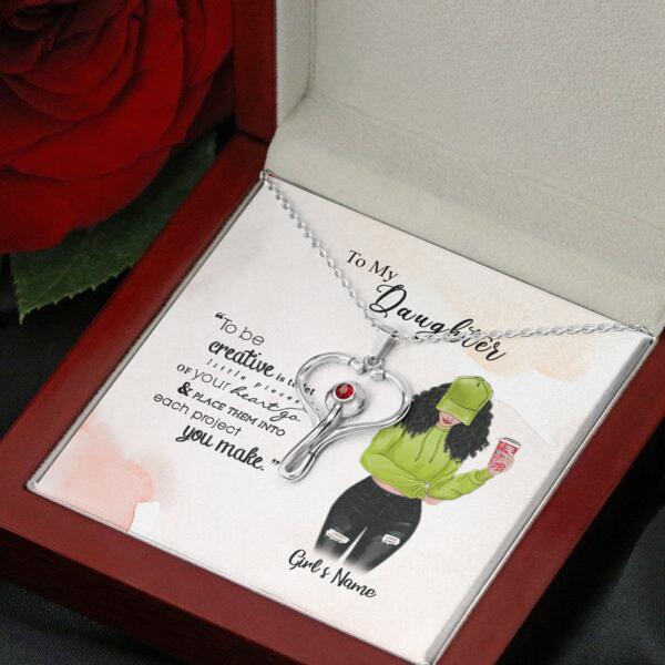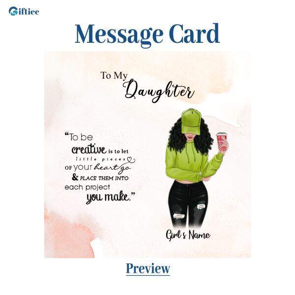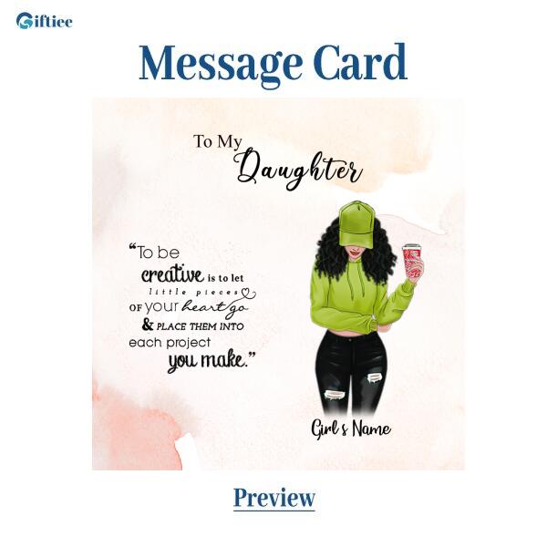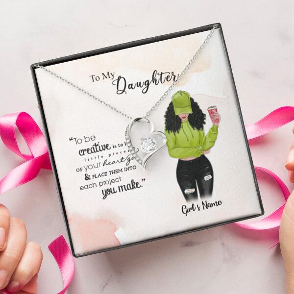 To My Daughter Personalized Necklace With Personalized Message Card (9 Necklace Designs) - Name, Skin, Hair, Clothes, Drink, Background and Quote can be customized