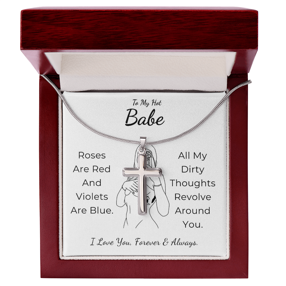 To My Hot Babe Artisan Cross Necklace with Snake Chain