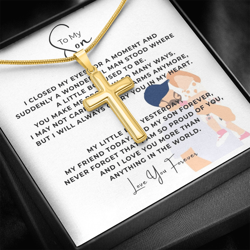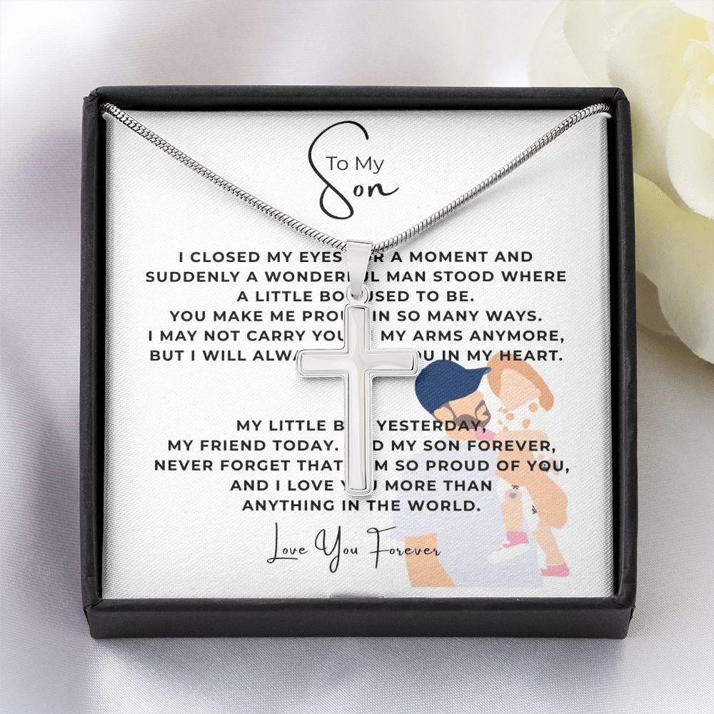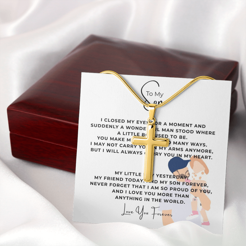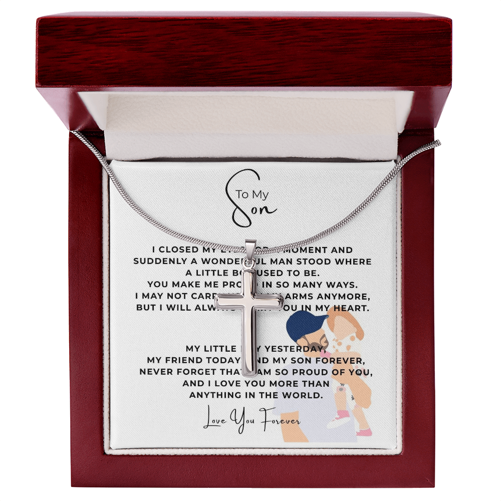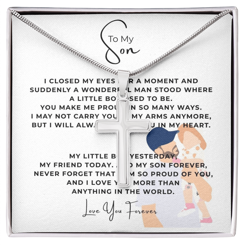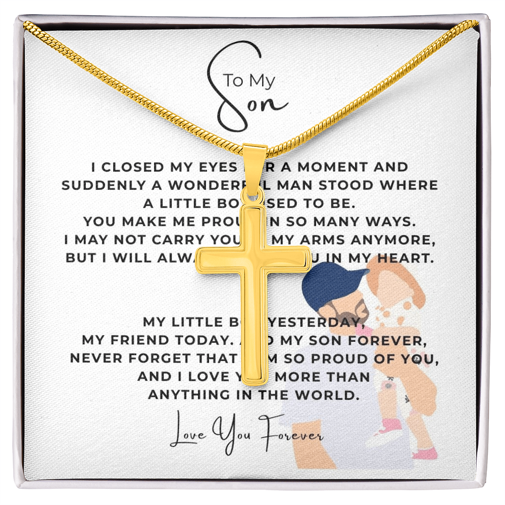 To My Son Artisan Cross Necklace with Snake Chain